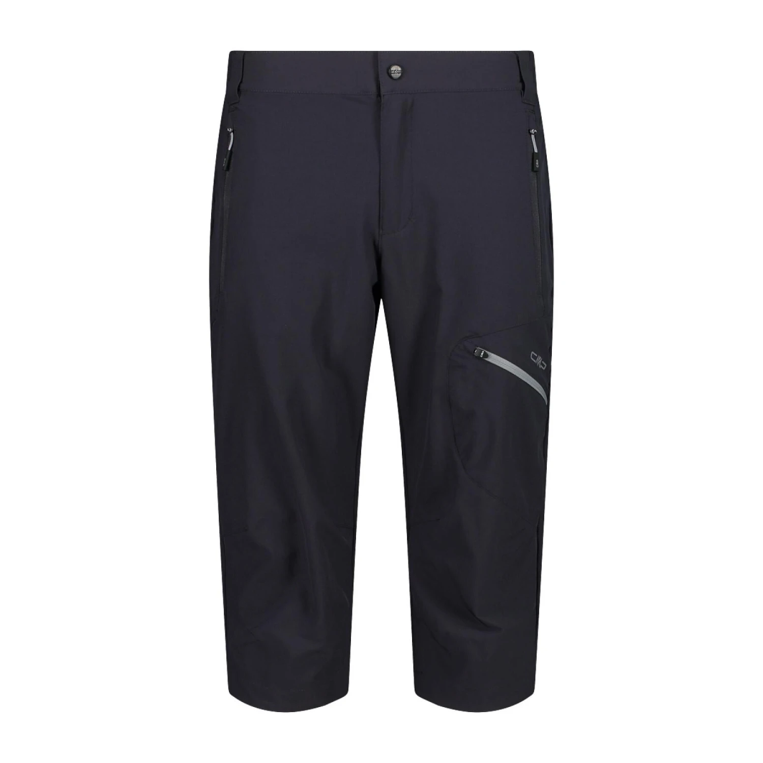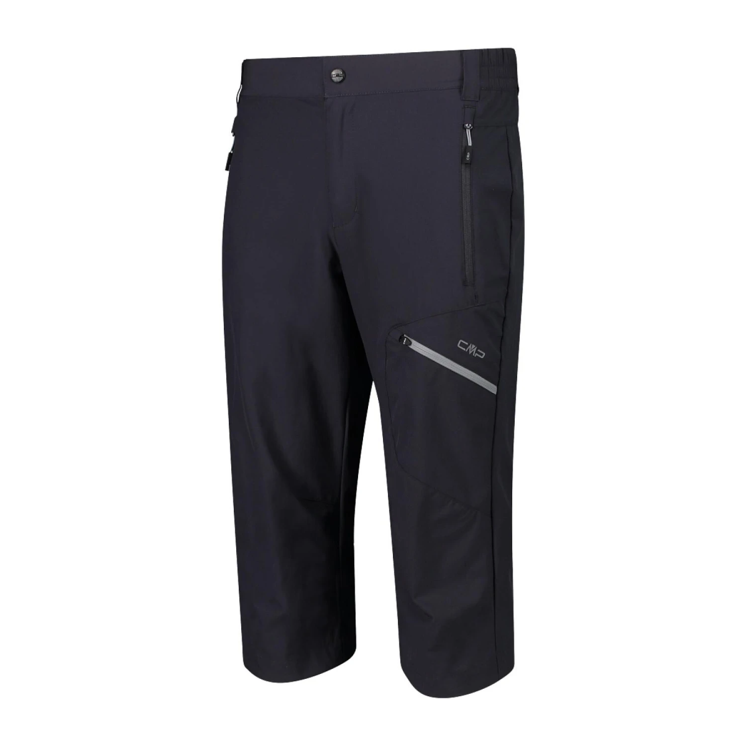 Un pantalón capri cómodo y práctico para practicar senderismo en verano. El tejido elástico nylon combinado con elastano acompaña al cuerpo en todos sus movimientos y hace que la prenda sea extremadamente ligera. Corte ergonómico en las rodillas. Cintura elástica y trabillas, así como cierre de doble botón. La prenda se completa con un bolsillo trasero, dos bolsillos laterales y un minibolsillo en el muslo con cremallera en contraste. El forro de los bolsillos es de malla ligera con función de ventilación.