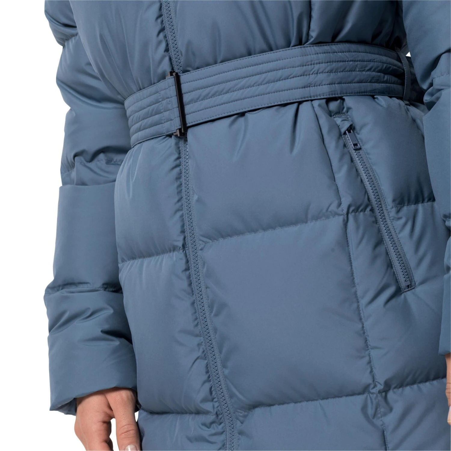 El material exterior es resistente al viento y al agua. Para que te sientas cálido y cómodo, incluso con mal tiempo. Y si empieza a nevar mucho met, puedes simplemente ponerte la capota. El cuello alto proporciona una protección perfecta para la cabeza y el cuello. La cintura integrada y ajustable individualmente garantiza una silueta elegante y femenina.
