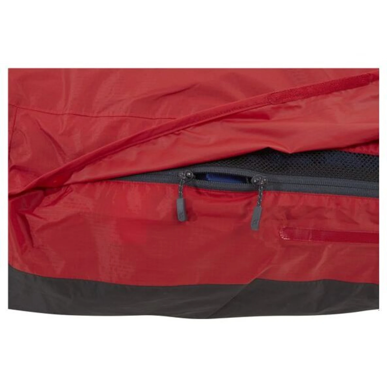 - Parte superior: nylon Tejido ripstop 40D con revestimiento de poliuretano (108g/m2) con DWR sin fluorocarbono HH: 10.000mm MVTR: 10.000g/m2/24hrs